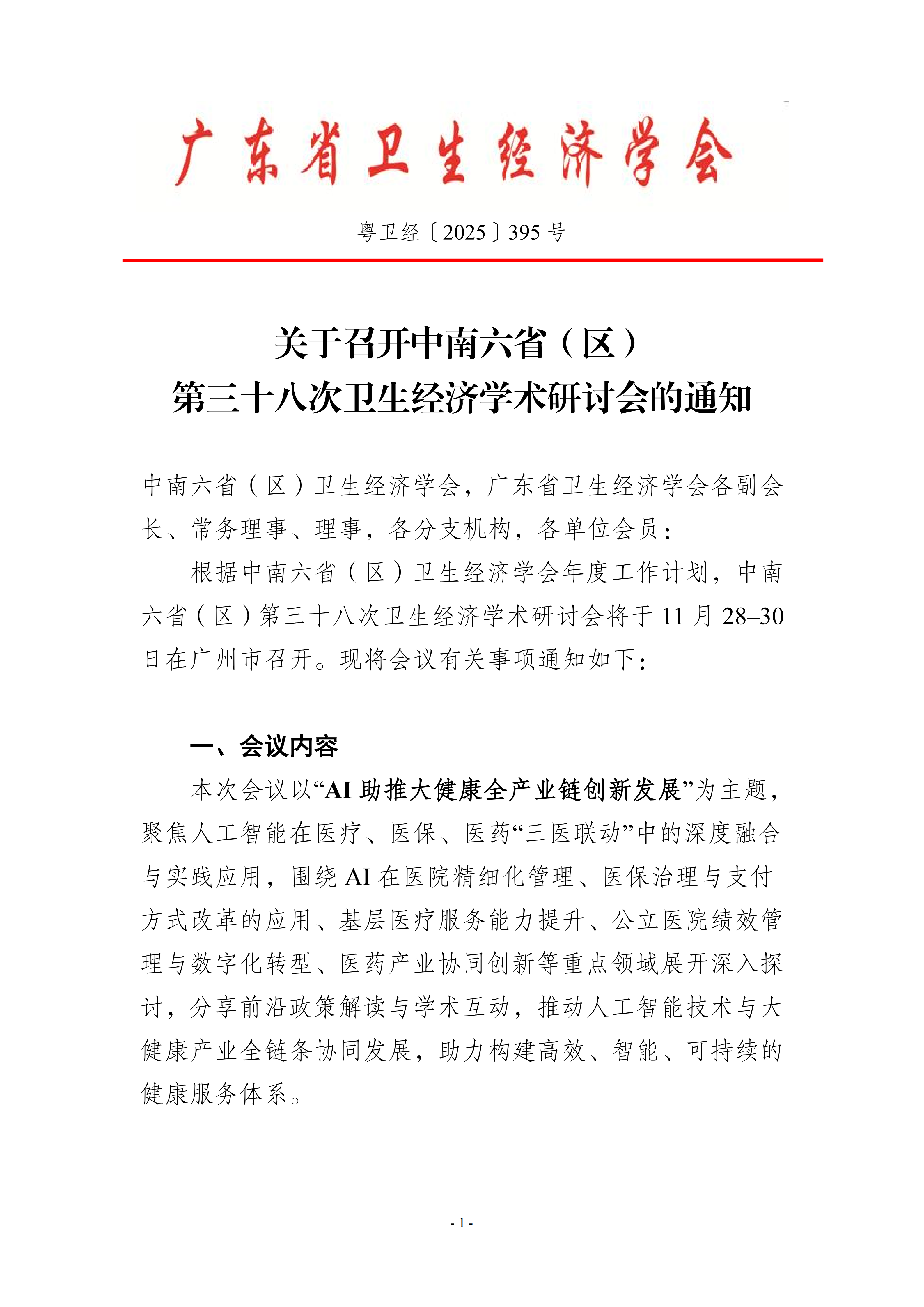 关于召开中南六省(区)第三十八次卫生经济学术研讨会的通知
