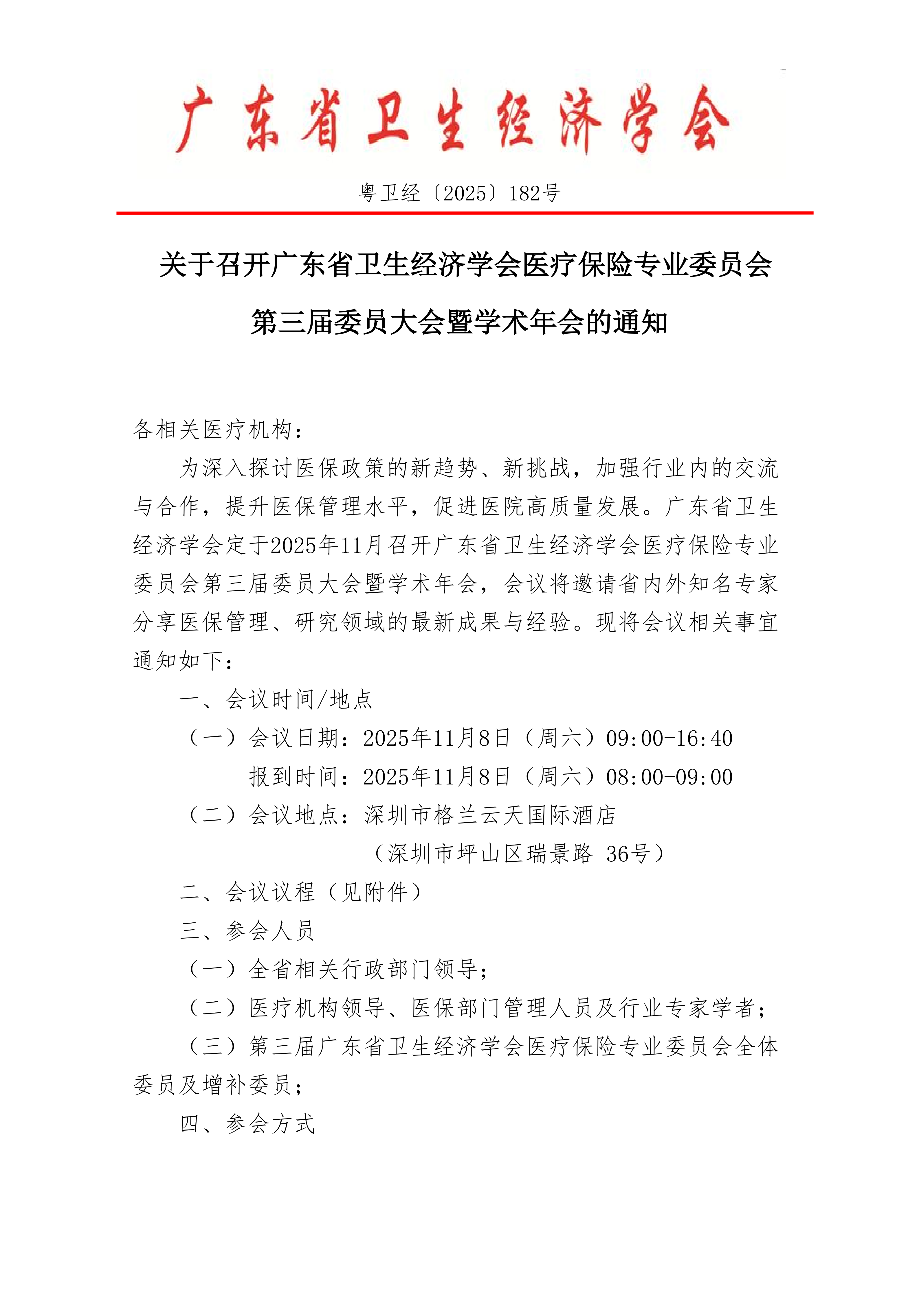 关于召开广东省卫生经济学会医疗保险专业委员会第三届委员大会暨学术年会的通知