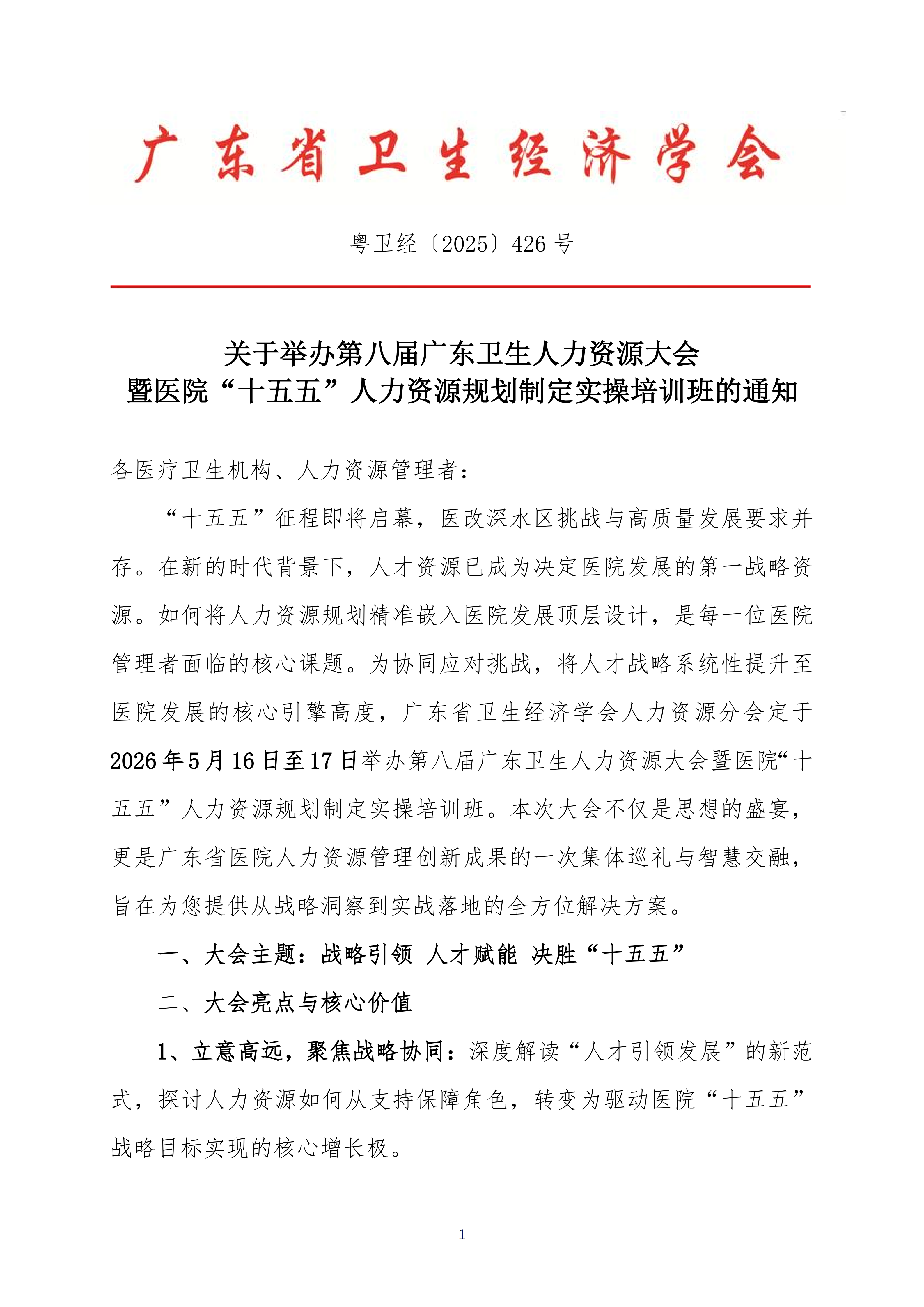 关于举办第八届广东卫生人力资源大会暨医院“十五五”人力资源规划制定实操培训班的通知