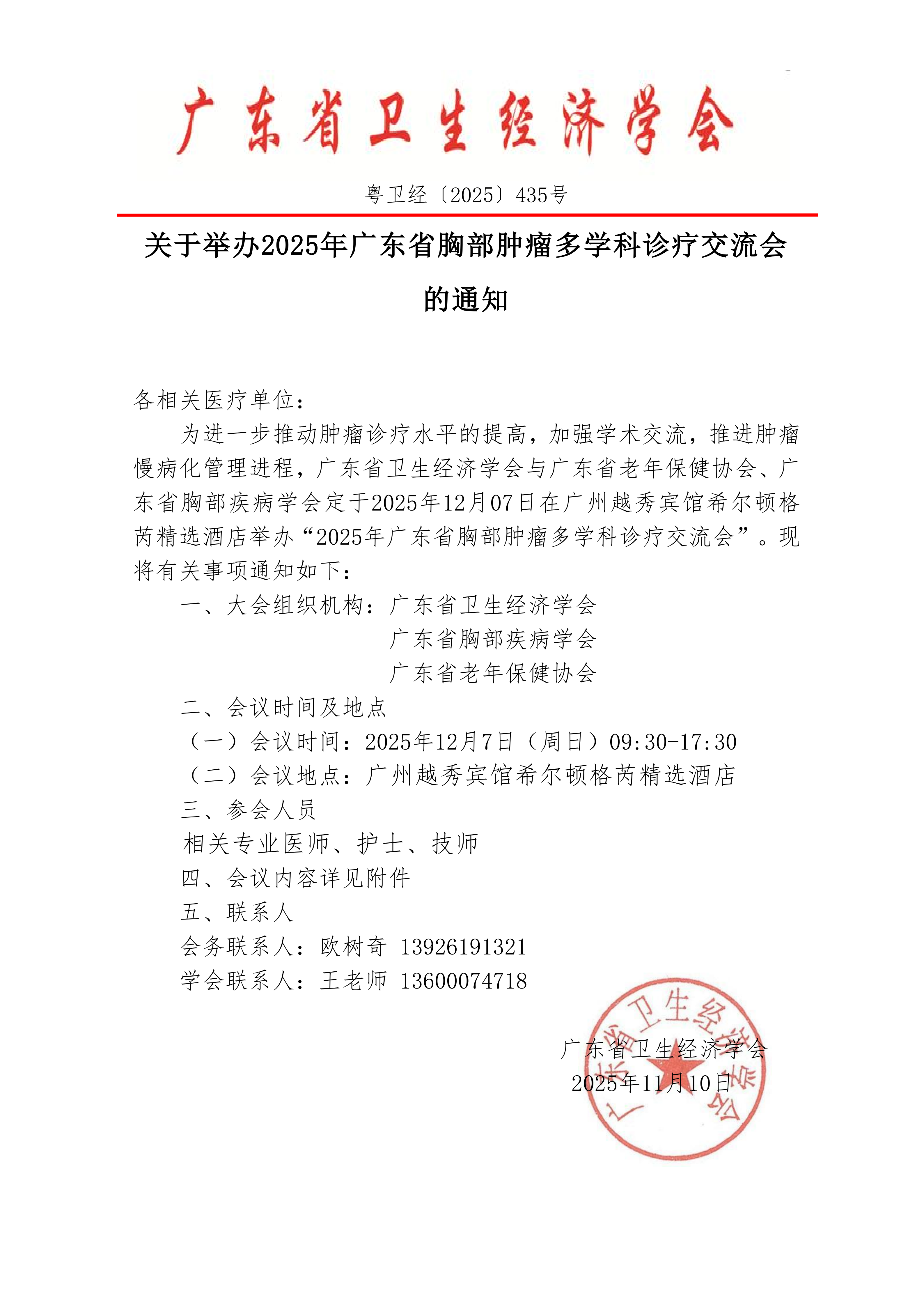 关于举办2025年广东省胸部肿瘤多学科诊疗交流会的通知