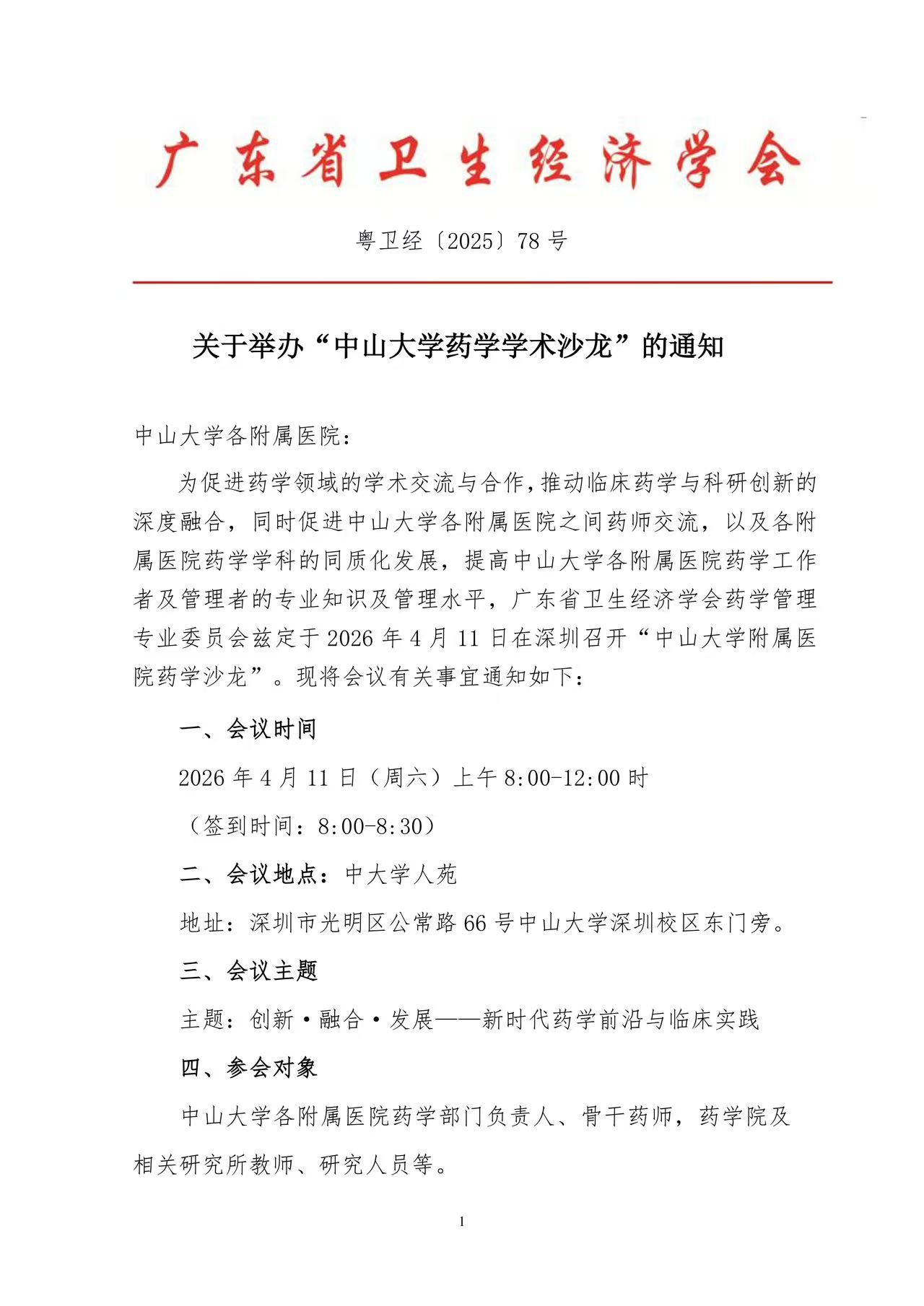 关于举办“中山大学药学学术沙龙”的通知