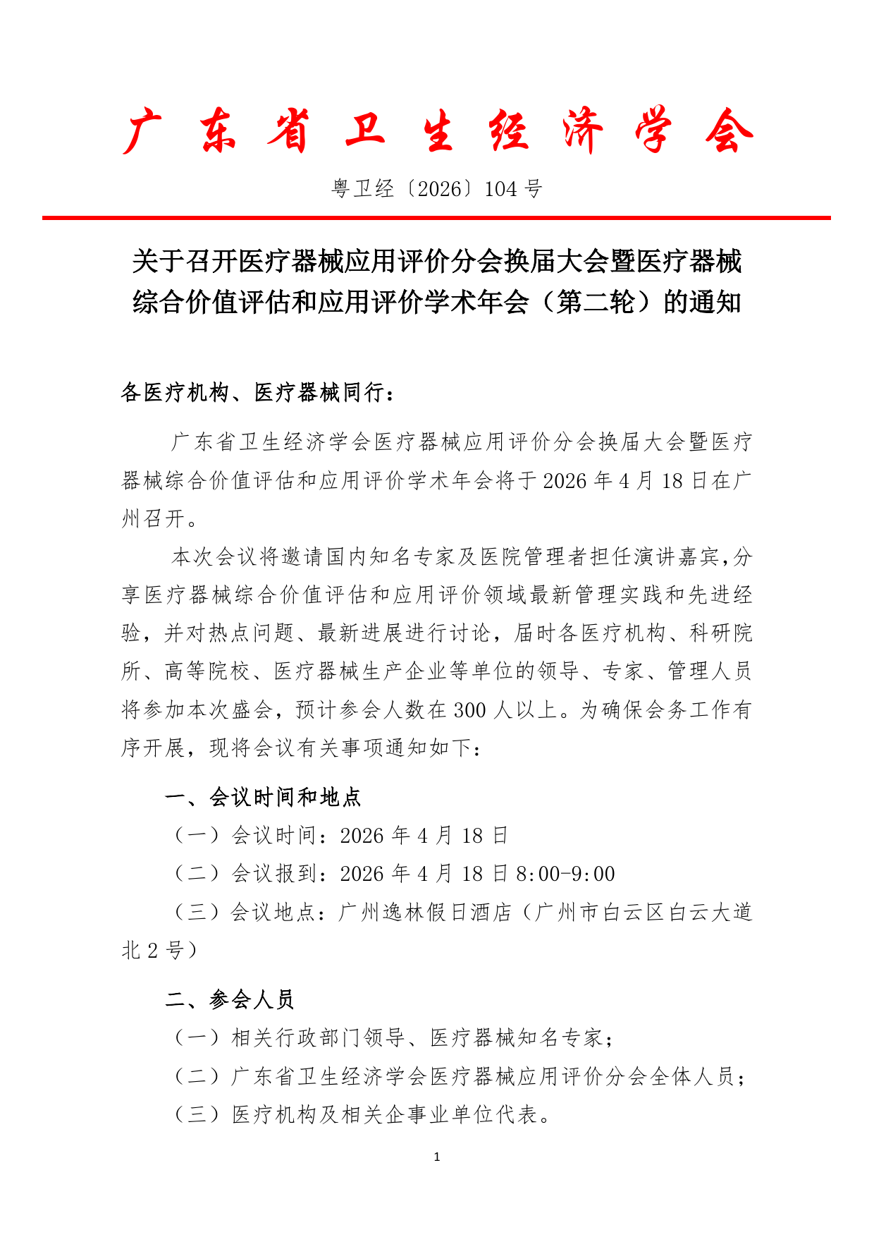 关于召开医疗器械应用评价分会换届大会暨医疗器械综合价值评估和应用评价学术年会(第二轮)的通知