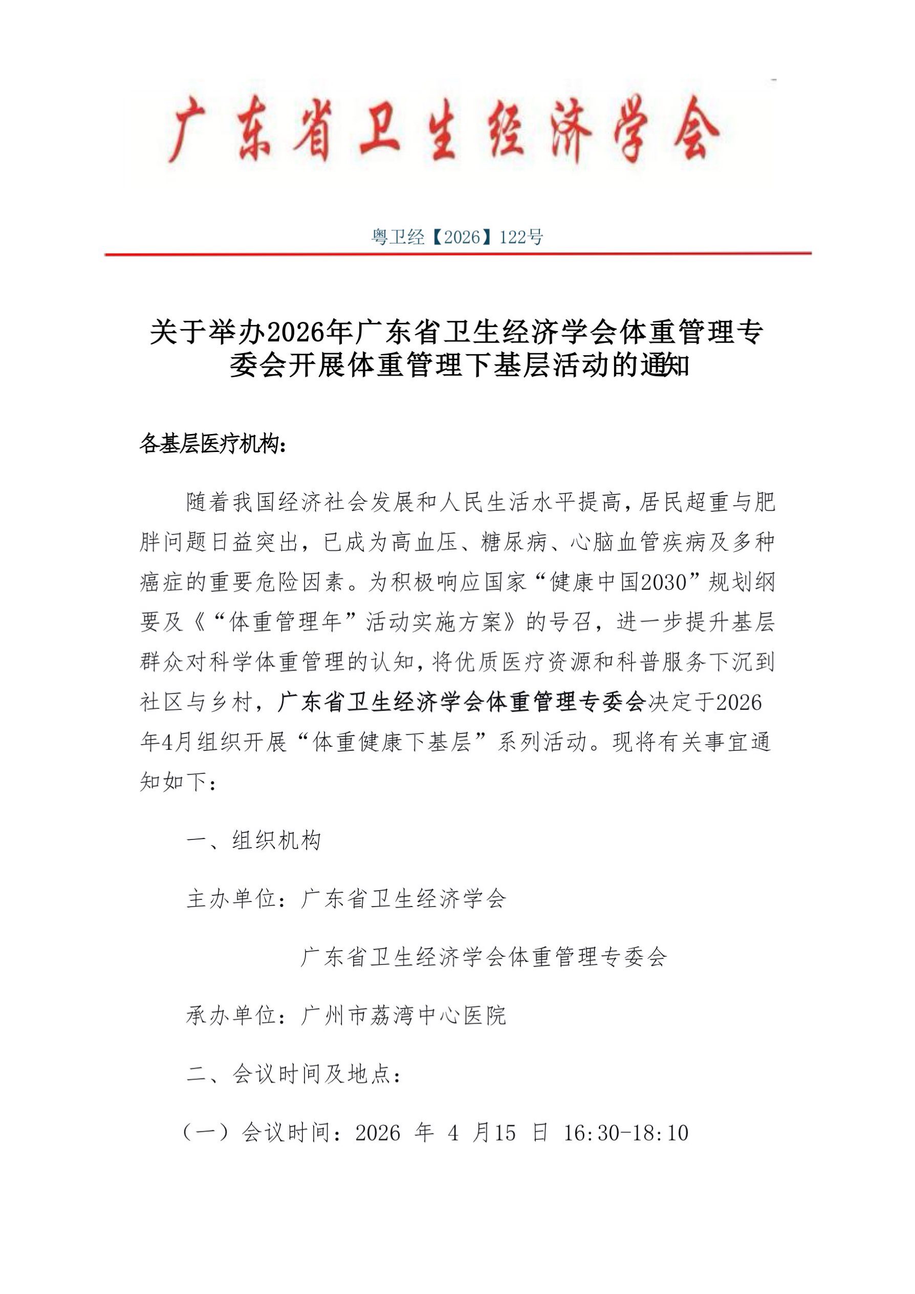 关于举办2026年广东省卫生经济学会下基层活动通知