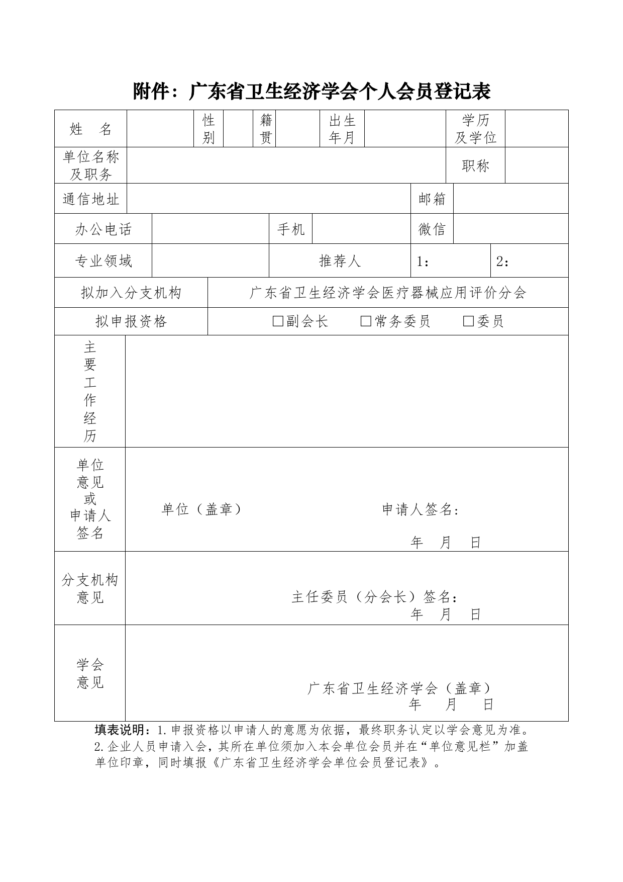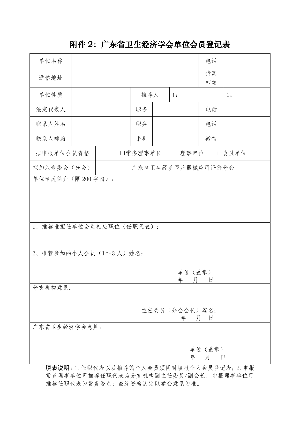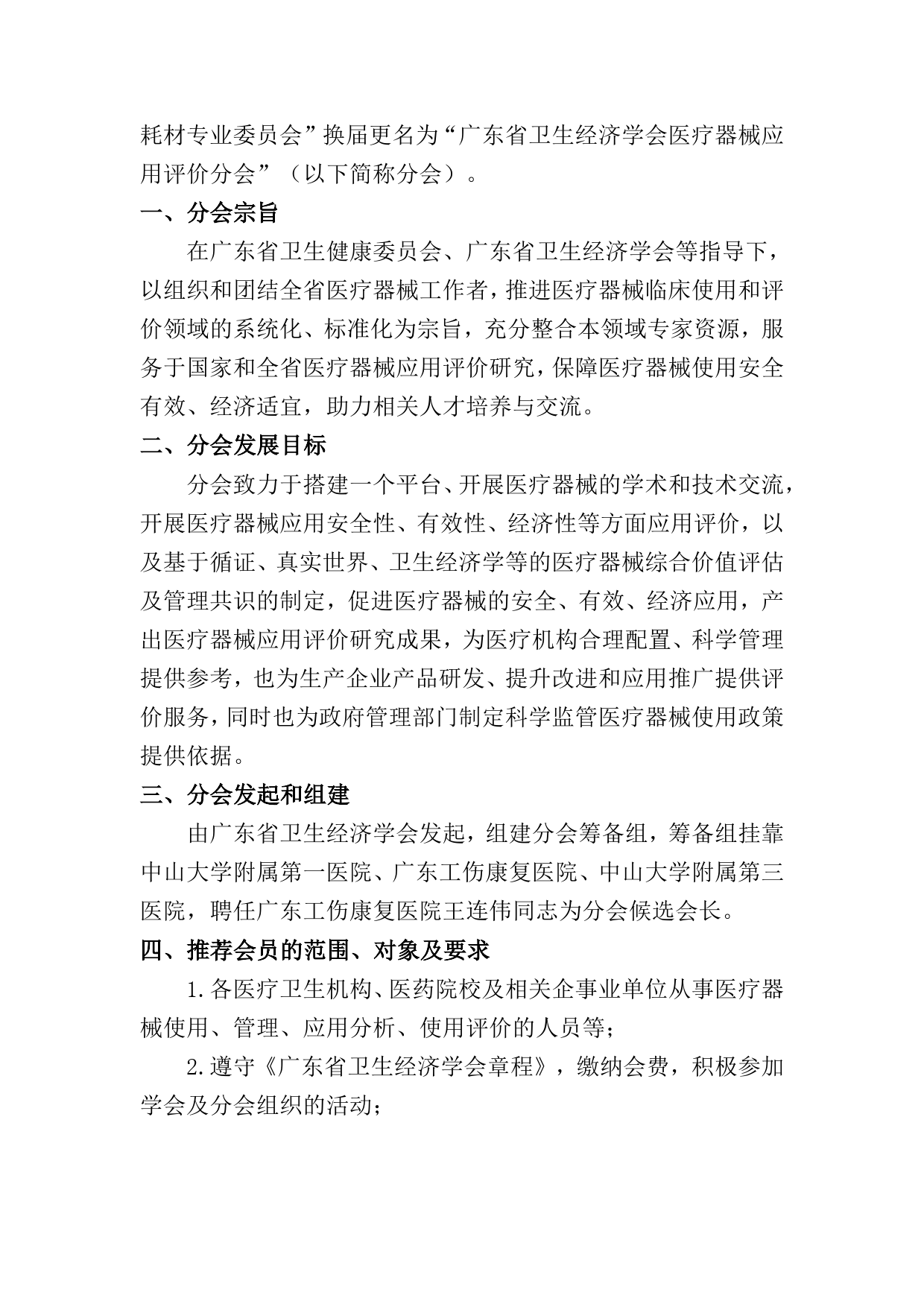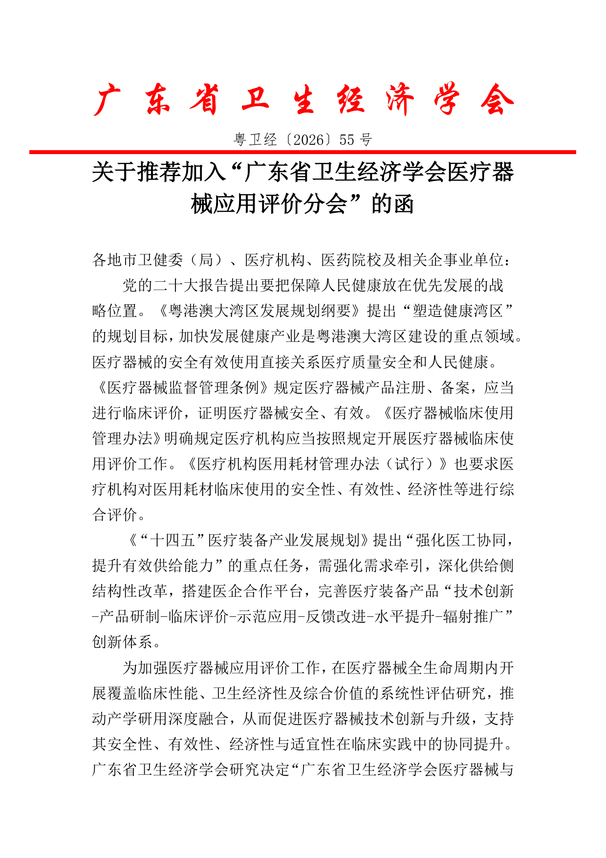 关于推荐加入“广东省卫生经济学会医疗器械应用评价分会”的函