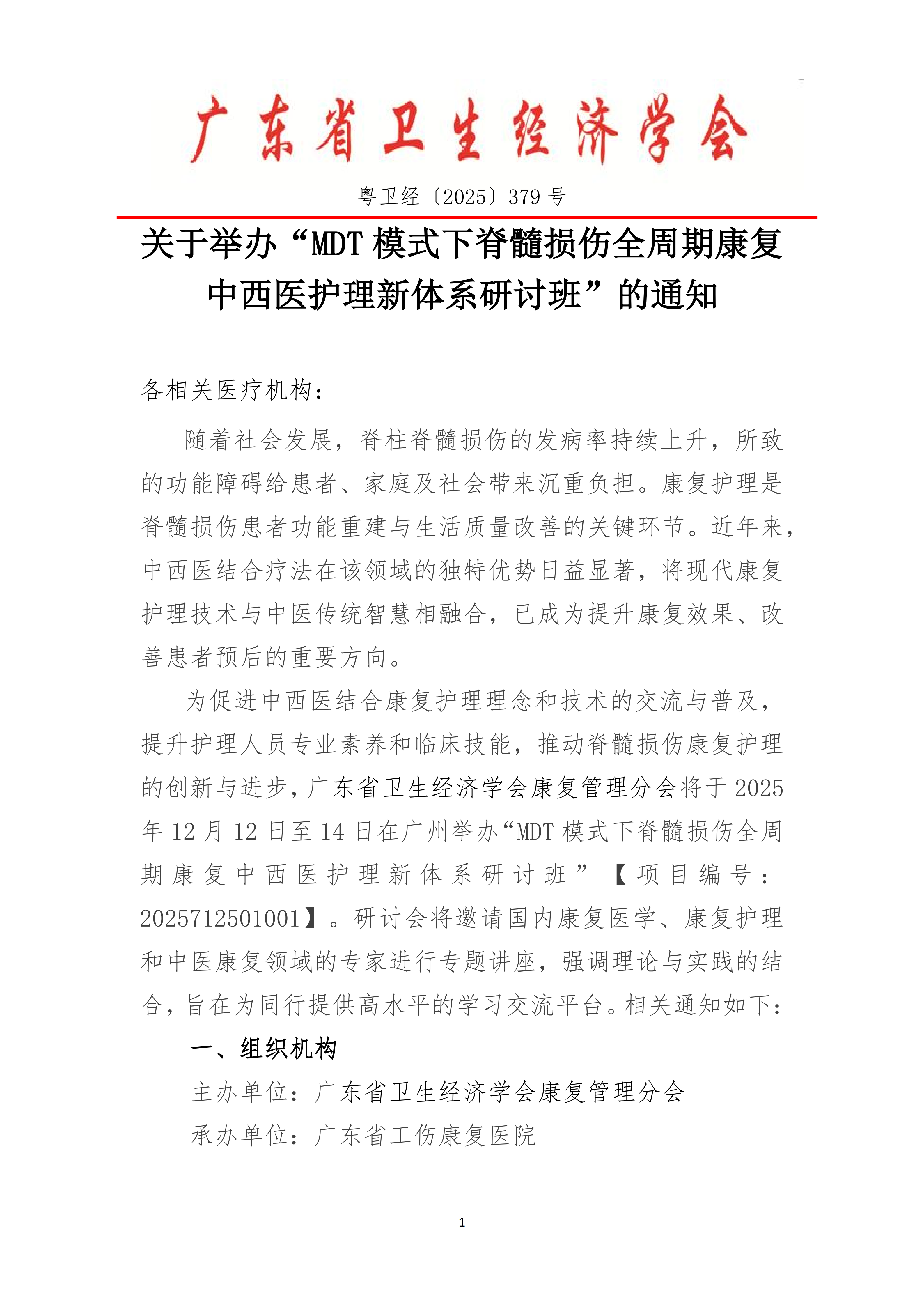 MDT模式下脊髓损伤全周期康复中西医护理新体系研讨班