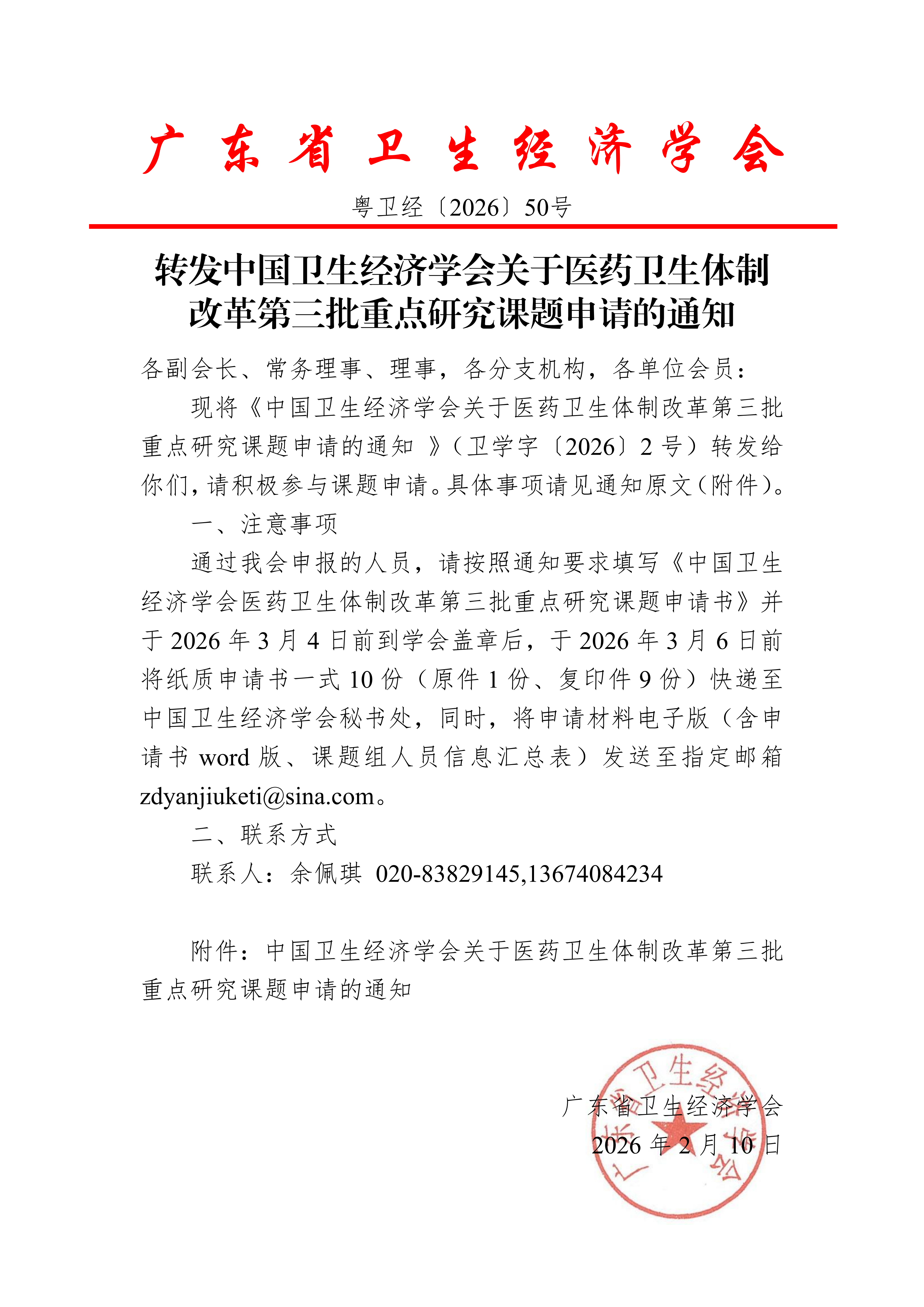 转发中国卫生经济学会关于医药卫生体制改革第三批重点研究课题申请的通知